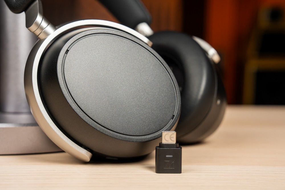 这次 HDB 630 盒中直接配附一个 BTD 700 蓝牙发射器。这个小玩意很有意思,有一个 USB type C 的端子,像是一个随身碟一样。只要插上计算机、笔电、手机、平板,甚至 Playstation 游戏机,就可以让原本仅支持 AAC、SBC 蓝牙编码的设备,传输 aptX、aptX Lossless、aptX Adaptive、LC3 等更高音质的音讯,还支持游戏低延迟模式。BTD 700 也可以搭配其他厂牌支持上述无损编码的耳机使用,藉以提升蓝牙音质。Sennheiser 这次大放送,让 HDB 630「买一送一」。