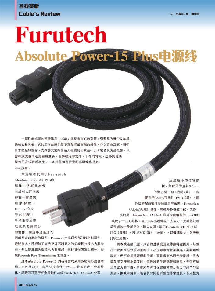 改进的Studio性能与Furutech销量最大的onclick="tagshow(event)" href="tag.php?name=%B5%E7%D4%B4%CF%DF" style="border-bottom: rgb(255,0,0) 1px solid; line-height: normal; word-wrap: break-word; white-space: nowrap; cursor: pointer">电源线之一,是采用最新的FI-15 Plus系列做成的电源线