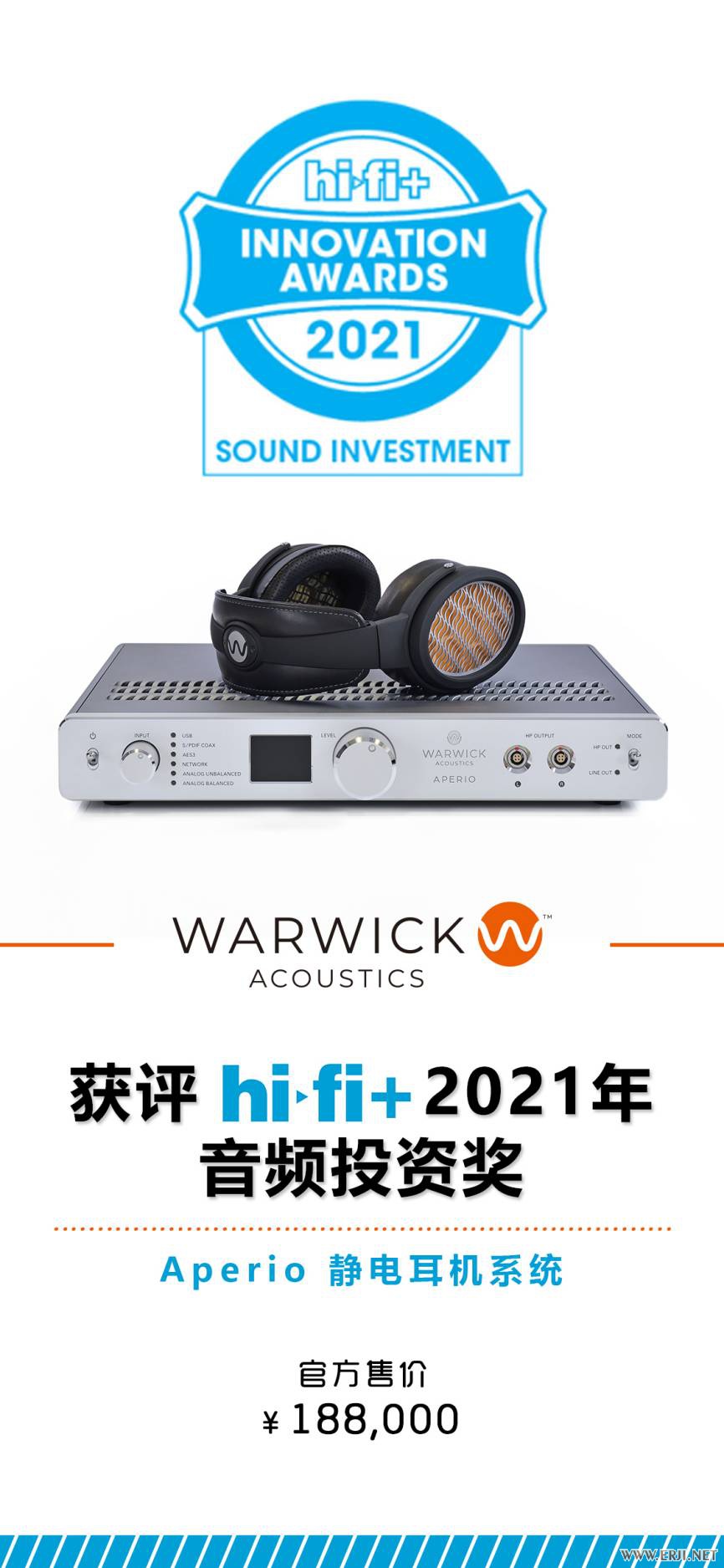 英国 Warwick Acoustics Aperio 静电耳机系统 获评 Hi-Fi+2021年音频投资奖。