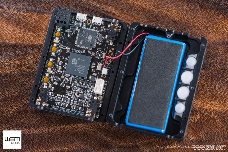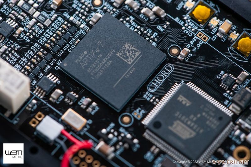 将科技浓缩到可以一手掌握, 但麻雀虽小五脏齐全,Mojo也继承了Chord家族的各种特性,比如标志性的玻璃滚球操作按键。Mojo为全金属机身,边角打磨圆滑,表面进行了哑光黑色氧化处理,与手机、大屏播放器捆绑时安全系数会高一些,并且拥有良好的触感。 与市面上绝大多数便携解码耳放都不同的是,CHORD Mojo 2 并不是使用现成的DAC方案,而是采用Sprtan FPGA(可编程门阵列)打造,解码功能的实现通过程序来完成,CHORD在FPGA造诣很深,FPGA也成了其核心技术,在Hugo、Hugo TT、 2Qute等产品中广泛使用,其解码性能往往要优于现有的DAC芯片方案,比如Mojo 2 可以实现最高768KHz采样率音频解码以及DSD512解码,非常强悍。